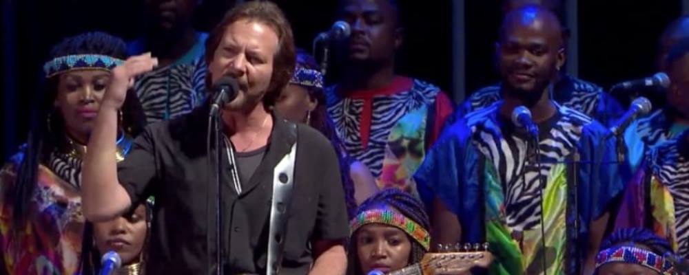 El show que se transmitió de manera integra por Youtube y que lo puedes ver a continuación, Vedder cantó «Imagine», «Betterman» junto a un coro africano y el tema mencionado, en una muestra de que se sigue recordando al inolvidable ex Soundgarden.