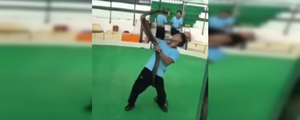 El sujeto estaba realizando una demostración con la cobra sus manos, cuando fue atacado por el animal, que lo mordió en el brazo.