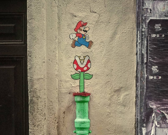 De ahí que en la calles de Montpellier, Francia, es probable que se encuentren a March -de los Simpsons- con arbustos como cabellos o la pandilla del fontanero italiano Mario Bross, saltando sobre muros de cemento.