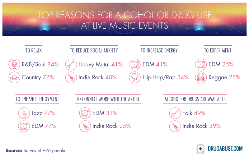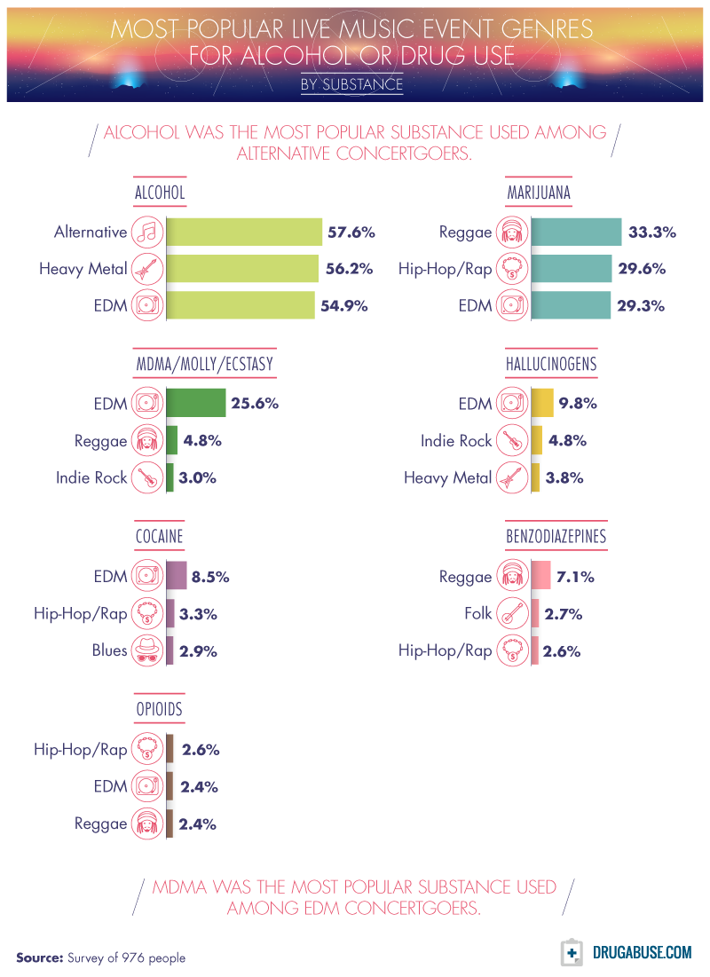 Revisa por estilo musical quienes son los más adictos según el informe realizado por drugabuse.com