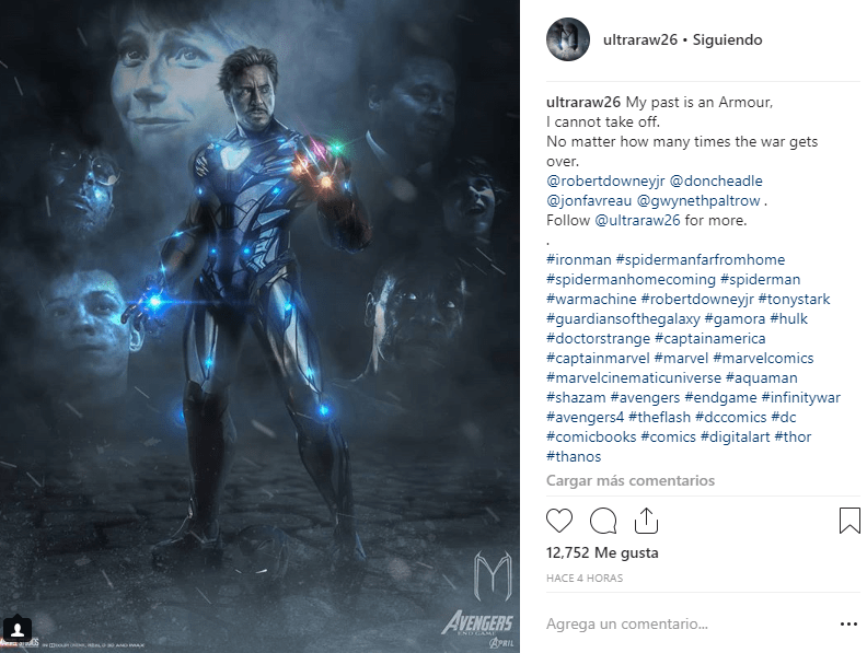 En la nueva filtración de Internet se puede ver a Iron Man con el rostro molesto y una nueva armadura, la cual sería su pieza final creada con la mejor tecnología, pero también se ve brillar a las 6 gemas del infinito en su mano izquierda, revelando que posiblemente sea ese su sacrificio final para revertir lo sucedido.
