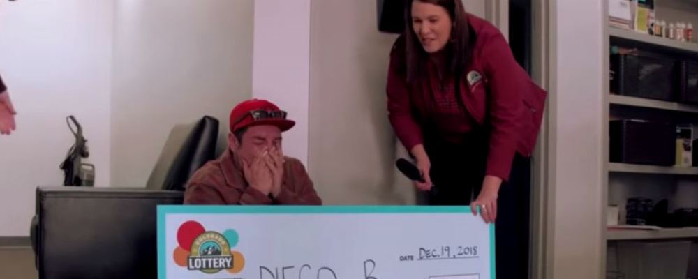 Diego ganó uno de los premios de Scratch Wonka’s Golden Ticket y fue tal su impresión cuando supo la suma que le iban a entregar que cayó de rodillas al suelo sin poder contener las lágrimas de la emoción.