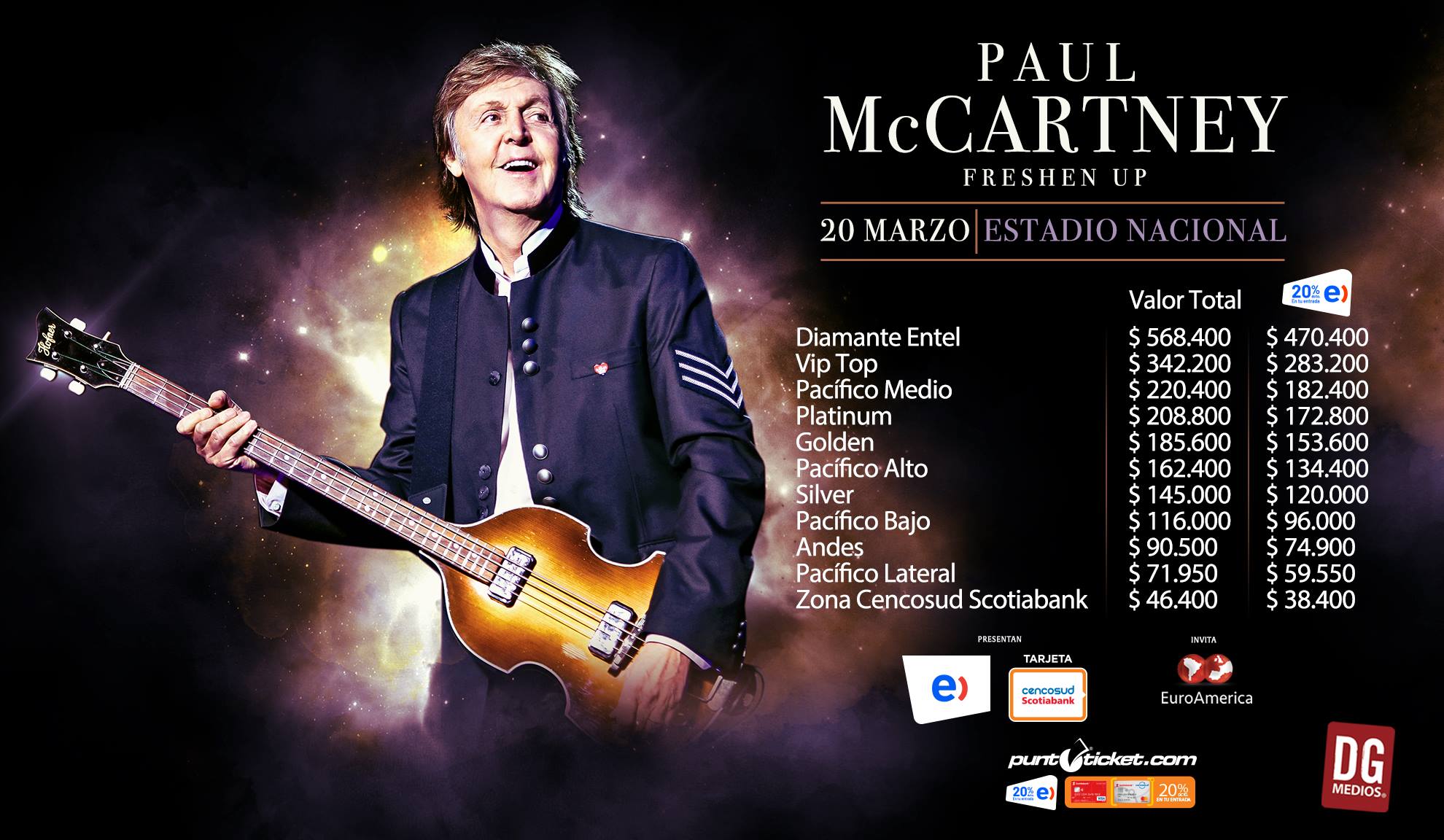 Con gran éxito se ha realizado la preventa para el show de Paul McCartney del próximo miércoles 20 de marzo en el Estadio Nacional.
