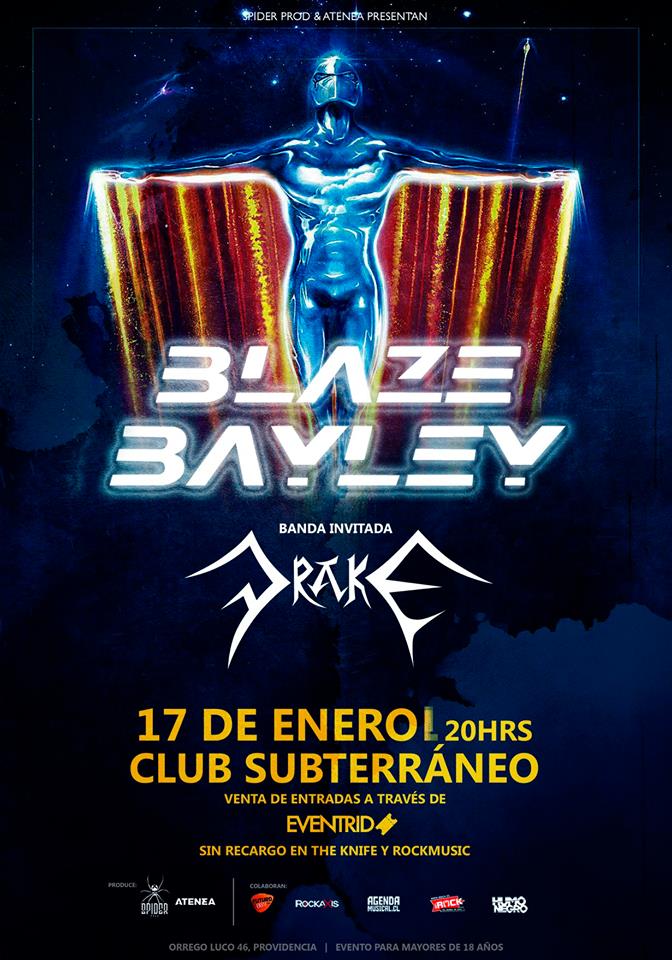 Blaze Bayley se presentará en el Club Subterraneo (Orrego Luco 46, Providencia), el 17 de enero del próximo año.