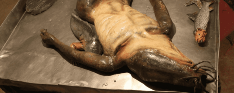 Aunque a primera vista la criatura parece real y sacada de una película de terror, lo cierto es que está creada con silicona. En esta publicación te dejaremos el video de YouTube que revela el misterio y algunas fotos de esta escultura.
