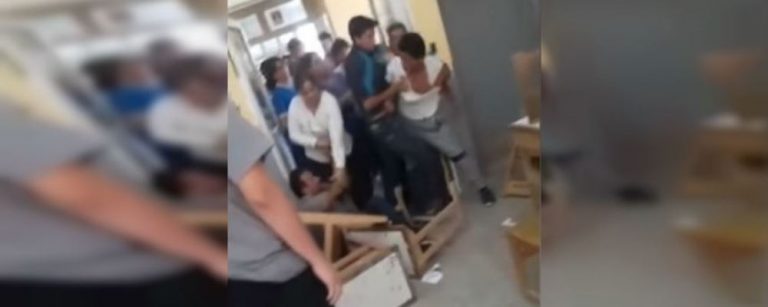 El menor atacó con furia al docente Mario Medina, quien recibió una patada en la cara. Varios compañeros trataron de impedir el ataque, pero el estudiante estaba descontrolado y no lo pudieron detener.