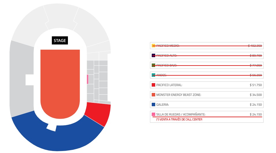 Para el cuarto show de la leyenda del heavy metal en el Estadio Nacional programado para el martes 15 de octubre de 2019, por el momento solo quedan disponibles las localidades de Pacífico Lateral, Monster Energy Beast Zone (Cancha) y Galería. El resto de las localidades (Pacífico Medio, Pacífico Alto, Pacífico Bajo y Andes) ya están agotadas.