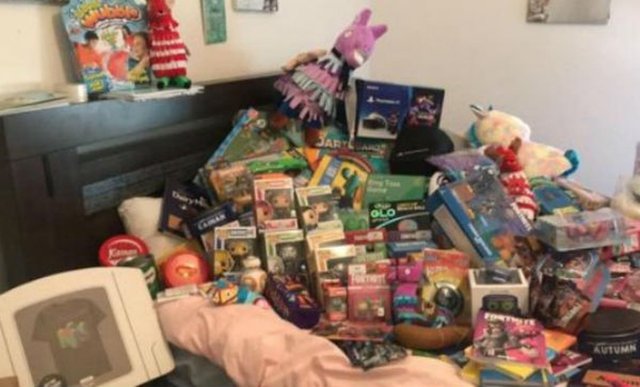 Se trata de una tarea difícil teniendo en cuenta que el volumen de regalos ocupa 14 armarios de la vivienda y que, en estos meses, ninguno de sus hijos los ha descubierto. Tal y como muestran las imágenes que ha publicado en Facebook, entre los presentes hay de todo: muñecas, videojuegos, peluches y bicicletas, publica La Vanguardia.