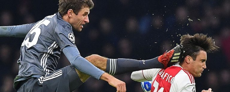 Minuto 75 y Ajax y Bayern Munich animan un duelo de vida o muerte por la última fecha de la fase grupal de la Champions. El liderato del Grupo E está en juego. En medio de la refriega, de pierna fuerte por cómo se estaba desarrollando el partido que en ese entonces iba 1-1, el alemán Thomas Müller se sale de todo límite y comete una brutal infracción.