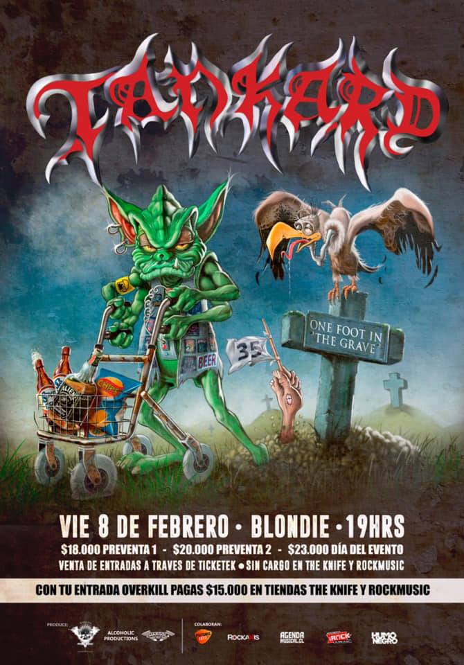 Noticias Tankard confirma su regreso a Chile – Viernes 8 de febrero, Blondie La banda alemana de thrash metal trae su último disco "One foot in the grave" y sus clásicos de más de 30 años cantándole a la cerveza. Por Jorge Lagas | 11 Dic, 2018. 16:32 hrs Noticias de cartelera para 2019, un nuevo concierto: los alemanes Tankard vuelven a Chile, con fecha para el 8 de febrero en el club Blondie. La banda trae su último disco “One foot in the grave” (2017) y sus clásicos de más de 30 años dedicados al thrash metal y la cerveza. Entradas: Ticketek, preventa 1 a $18.000. La 2 estará a $20.000 y el día del evento a $23.000. Promoción: con tu entrada a Overkill (1 de febrero, Teatro Teletón, se adquieren en este enlace), compras tu entrada a Tankard a sólo $15.000 en tienda The Knife (Eurocentro) y Rockmusic (Portal Lyon). tankard ¿Lo notaste? Ahora puedes enviar notas de voz en Instagram Los afiches que tenía listos Boca Juniors si ganaba la Libertadores Sigue a FUTURO.cl en Google Discover Recibe nuestros contenidos directamente en tu feed. Seguir en Google Contenido patrocinado