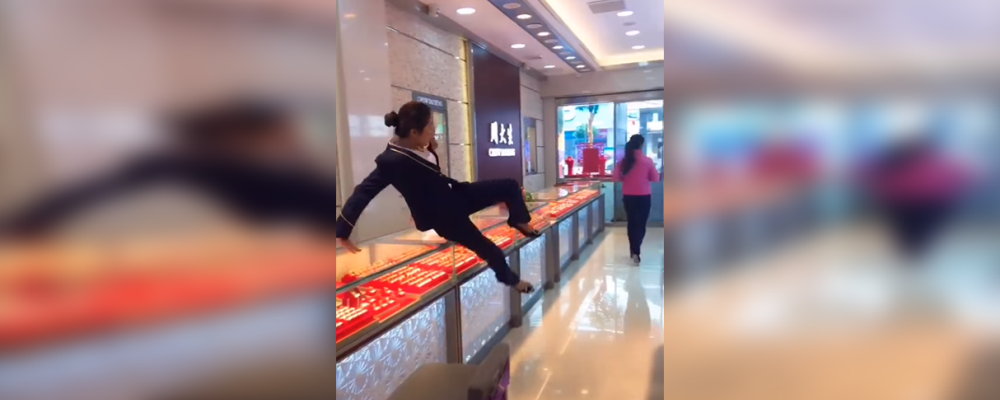 La escena que se repite en varios videos viralizados en China es la siguiente: Una mujer en una lujosa joyería se prueba un collar, ayudada por el vendedor. Apenas tiene puesto el accesorio, sale corriendo en dirección a la puerta, haciendo que el trabajador se apresure por alcanzarla, saltando obstáculos si es necesario; pero la clienta se detiene abruptamente frente a un espejo para ver cómo le queda la alhaja, y su persecutor se aleja avergonzado por haber desconfiado de ella.