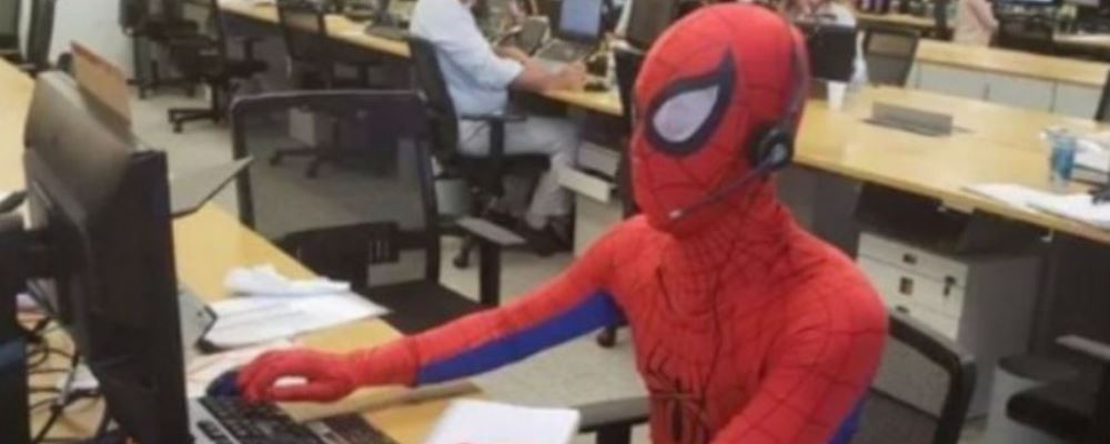 Las imágenes de YouTube ya acumulan más de 100.000 reproducciones, en las que se ve al sujeto trabajando vestido como el superhéroe de Marvel, tras presentar su renuncia, consigna 20 Minutos.