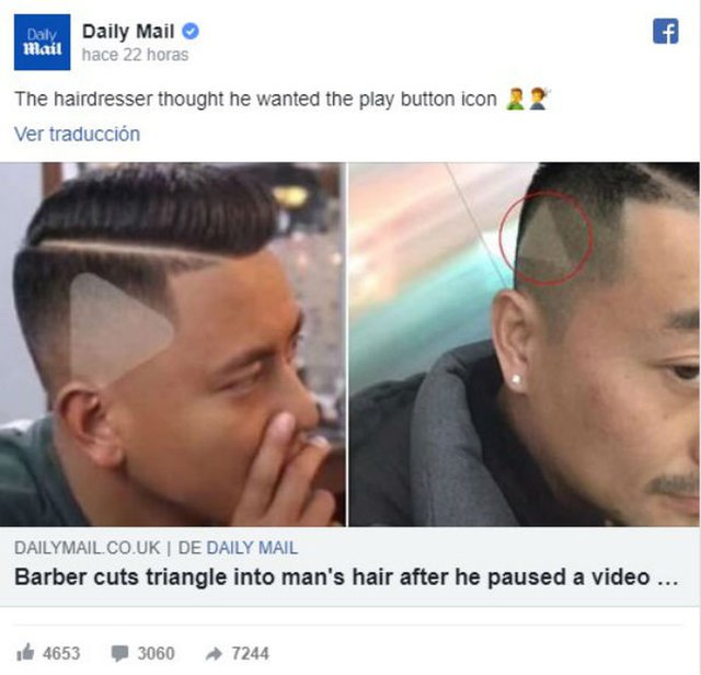 El peluquero creyó que el «play» también estaba incluido en el look final y no dudó en añadirlo a su obra maestra.