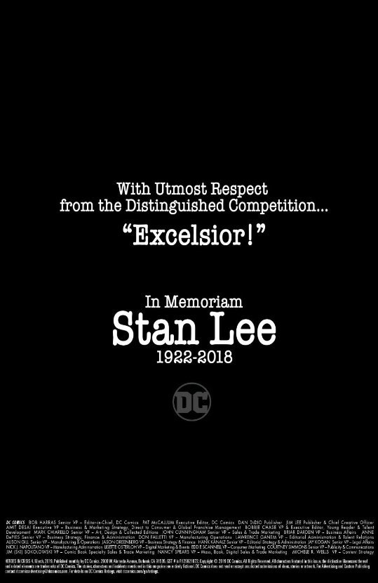 En un acto de cortesía y clase profesional, DC Entertainment publicó el siguiente homenaje al viejo y querido Stan en la primera lista de estrenos de cómics de 2019.