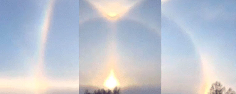 Joven captó lo ocurrido en Suecia, donde aparecieron «cuatro soles» formando un halo de luz con arco iris.