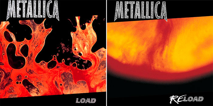 Los discos de 1996 y 1997, que posiblemente sean los más controvertidos de la carrera de los de San Francisco, son los elegidos. El primero, ‘Load’, presentaba la foto titulada “Semen and Blood III”, ni más ni menos que sangre de vaca y semen del propio artista entre dos planchas de plexiglás, mientras que ‘Reload’ contó con una imagen similar, titulada “Piss and Blood XXVI”, un título también muy elocuente.