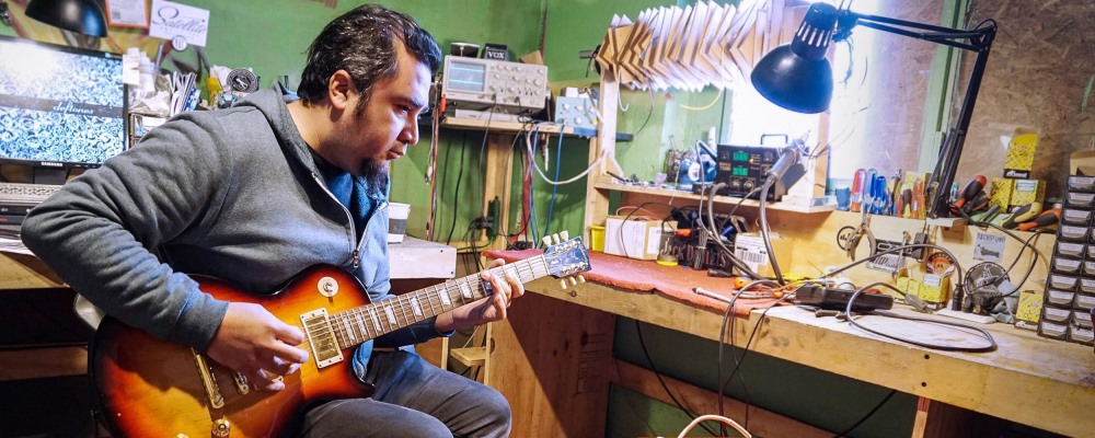 Desde el 2013 que Plaza fabrica amplificadores de guitarra personalizados. Con su marca MP Custom no sólo recibe elogios a nivel nacional: ha conquistado orejas fuera de Chile, y entró al mundo de la música por la puerta de atrás gracias a una pega que según su familia nunca debería haber funcionado.