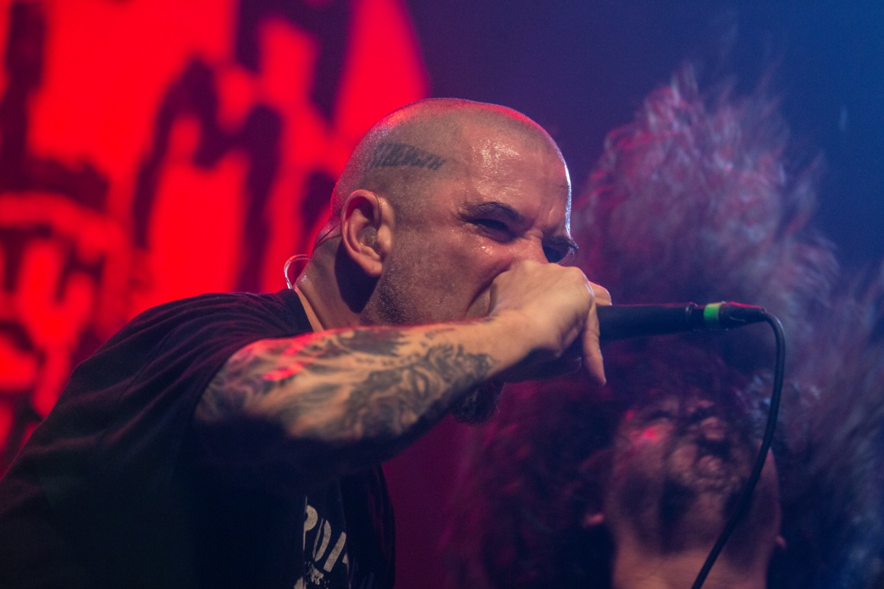 21:20 horas y el quinteto subió al escenario con una afición que de inmediato gritó y vitoreó, para recibir a un emblema del metal mundial. Con una mochila que dejó al costado de la batería, más delgado y con su característico ceño fruncido, inició el catálogo con su actual banda que fue bien recibido en el Teatro. “Bedribben” y la más reconocida de su presente “Choosing Mental Illness”, se interrumpieron cuando los presentes cantaban a Anselmo, mientras el músico golpeaba el escenario en señal de reverencia, y levantaba sus pulgares en aprobación de lo ocurrido.