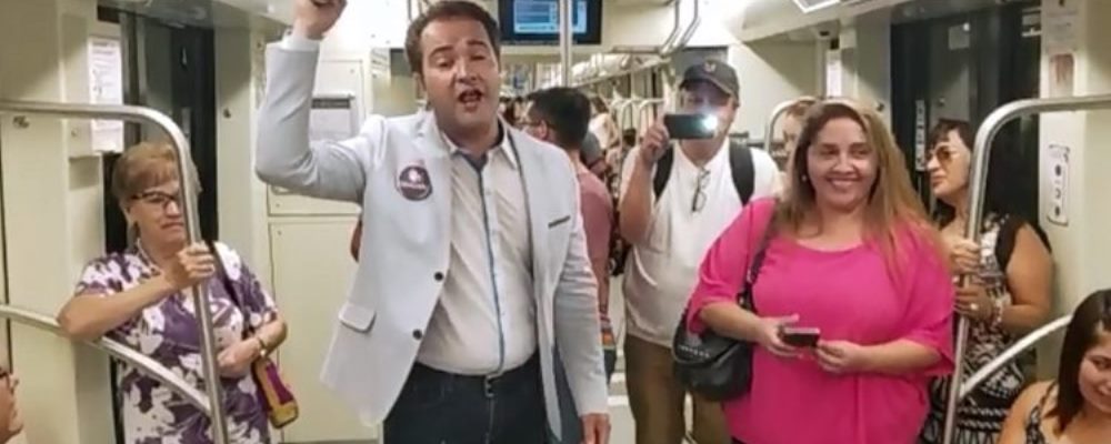 El alcalde de Conchalí, quien antes de ser una autoridad comunal tuvo una carrera musical a fines de los 90, se subió a uno de los vagones de la línea para interpretar su clásico kitch «Chica Rica». «Quiero cantar una canción porque estoy contento.Si me pueden acompañar bien, si no una monedita tampoco hace falta», dijo el edil a los pasajeros que se encontraban en el vagón.