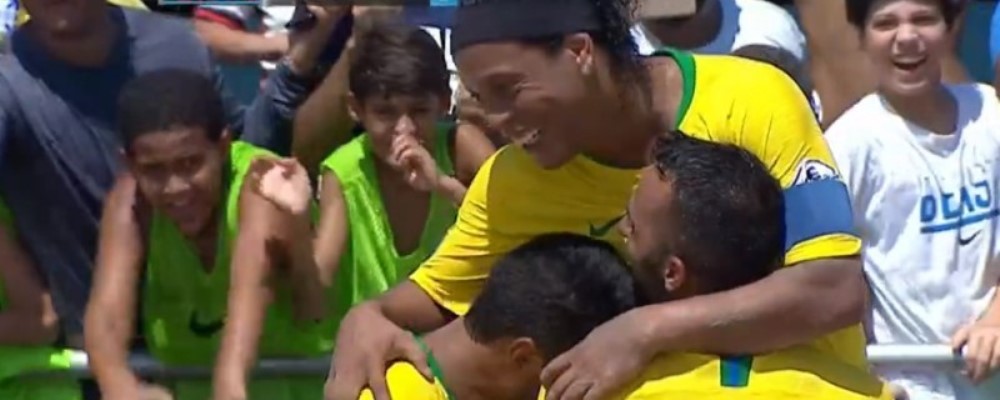 El talento del ex jugador del Barcelona, está completamente intacto. Ya retirado, Ronaldinho con unos kilos de más y luego de diversos problemas económicos, hizo noticia por lo que mejor sabe hacer, que es jugar al fútbol.