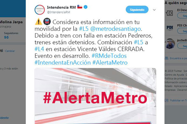 Producto de una falla eléctrica en la estación Pedreros, el servicio de trenes dejó de operar entre Plaza Maipú y Ñuble.