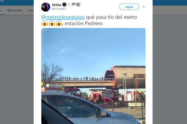 Producto del cortocircuito, usuarios que se encontraban al interior de uno de los trenes, a metros de Pedreros, debieron evacuar la máquina y caminar por la orilla de los rieles hasta la estación. Paulina del Campo, gerente de Cliente del Metro, sostuvo a Cooperativa que «lo que ocurrió es que se produjo unos arcos eléctricos que se sienten como pequeños estruendos, pueden efectivamente tener emanaciones pequeñas de humo, eso es lo que el fondo vieron algunos pasajeros».