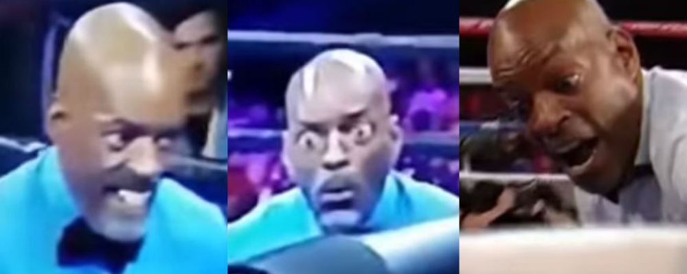 Sus caras de asombro se roban la película cada vez que dirige una pelea.