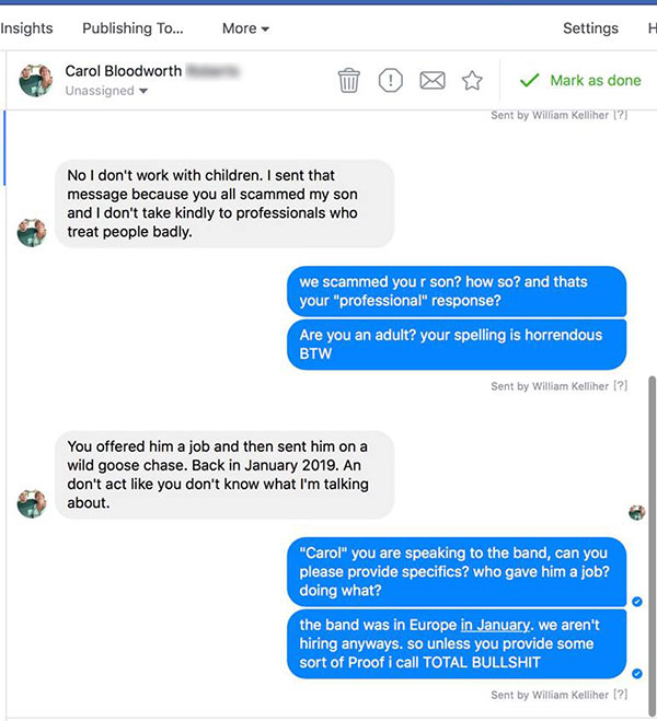 Las capturas de pantalla de la conversación se compartieron en el perfil de Facebook de la banda, pero fueron eliminadas. Para suerte de todos, algunas personas fueron lo suficientemente rápidas para guardar estas imágenes.