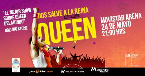 La banda Dios Salve a la Reina se presentará el viernes 24 de mayo, a las 21:00 horas, en el Movistar Arena. Entradas a la venta a través del sistema Puntoticket.