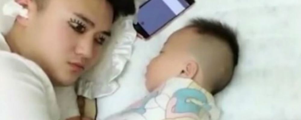 Ahora un padre chino ha ideado una creativa manera de dormir la siesta sin descuidar sus tareas como papá. El truco en cuestión consiste en dibujarse un par de enormes ojos abiertos en sus párpados para hacer creer al niño que todavía está despierto.