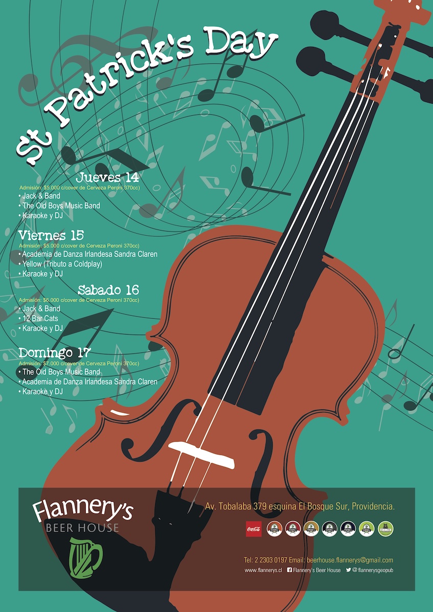 Y como ya es tradición, en el Flannery’s Beer House, en Tobalaba 379, Providencia, se realizarán una serie de actividades culturales con baile y música en vivo con lo mejor de la cultura irlandesa y las mejores cervezas de ambos locales.
