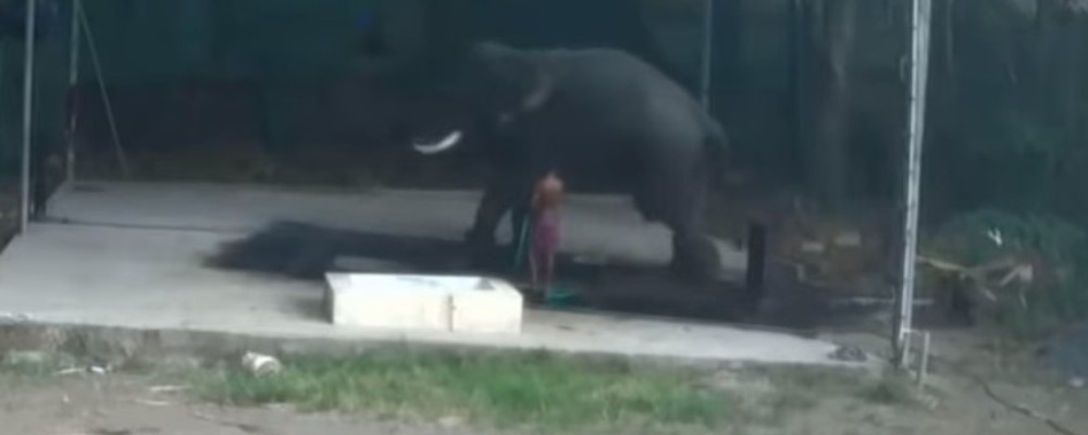 Se trata de la dramática muerte del cuidador de un elefante mientras lo bañaba e intentaba ordenarle que se sentara.