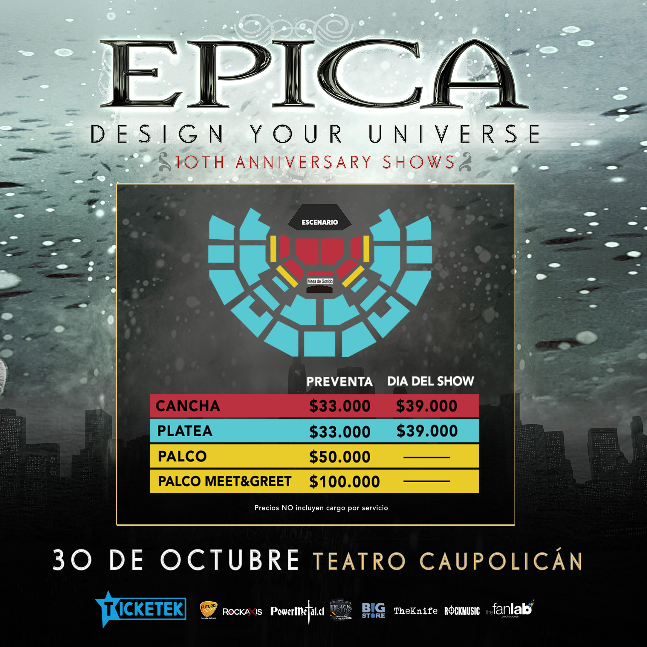 Los reyes indiscutidos del metal sinfónico Epica, liderados por Simone Simons regresan a Chile el miércoles 30 de octubre, al Teatro Caupolicán con el tour “Design Your Universe 10th Anniversary Shows”, celebrando la década del disco preferido por sus fanáticos.