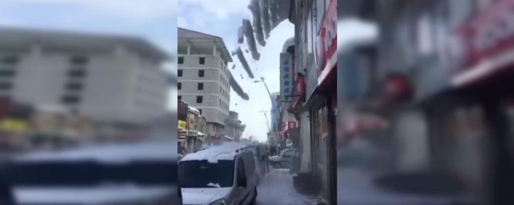 WATCH: Snow fell off this roof in #Turkey in slabs on Tuesday. A local resident said it felt like an earthquake and a car was slightly damaged. It is not clear what caused the snow to fall in that pattern. pic.twitter.com/hgvDMdP8ZH