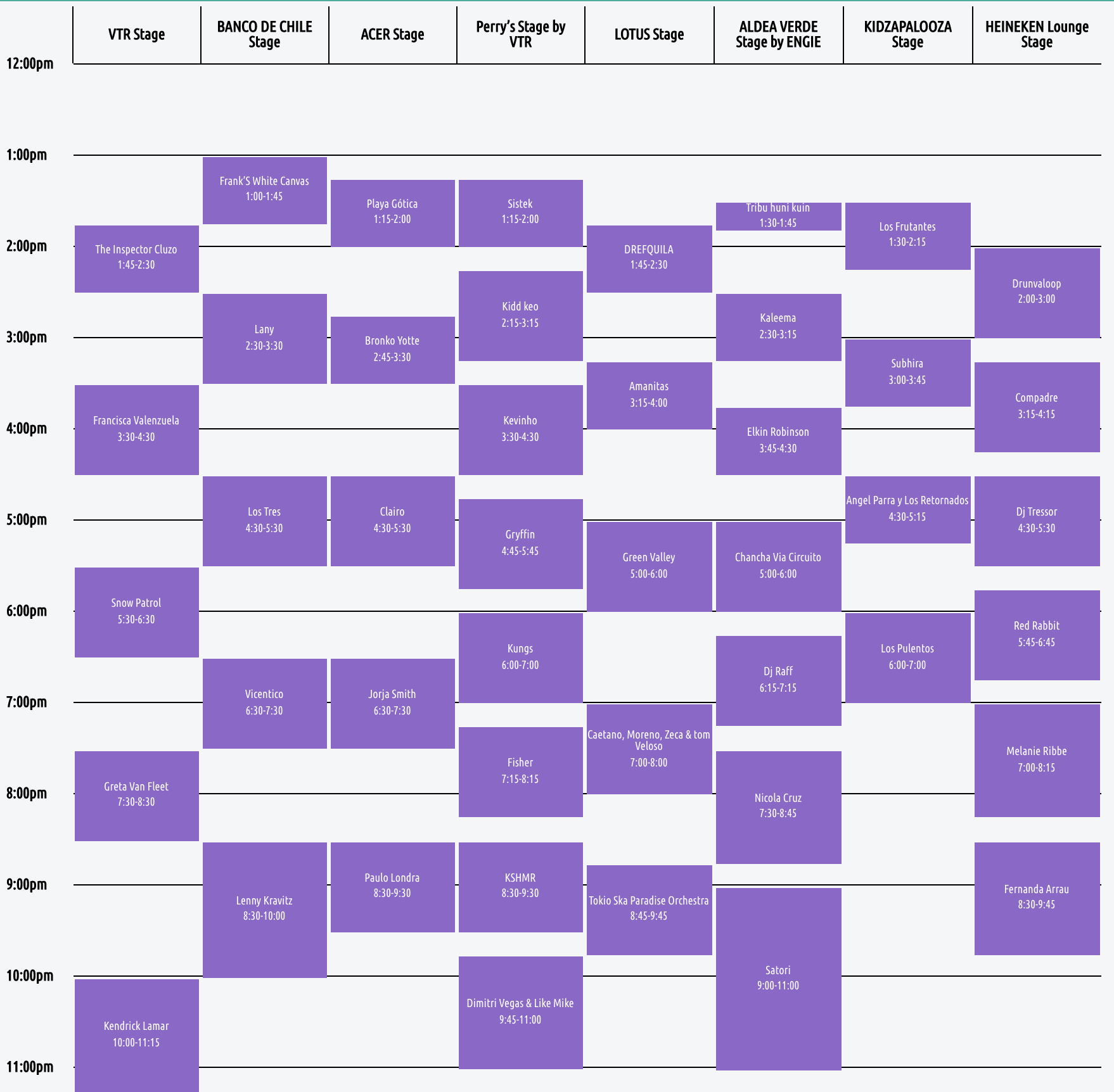 Lollapalooza chile 2019 cuenta con tres accesos/salidas: Av. Tupper, Av. Matta y Av. Rondizzoni.