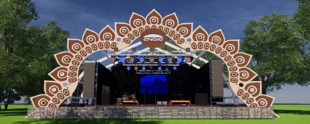 El escenario solar Aldea Verde by Engie contará con la potencia de un campo de 240 paneles solares desplegados para el funcionamiento de audio, luces y pantallas del escenario durante todo el festival, demostrando la potencia y utilidad de este tipo de energía para distintas industrias. Las dimensiones de Aldea Verde Stage by Engie son 27,18 m de ancho; 12,26 m de alto, 12,82 m de boca y 12.89 m de fondo.