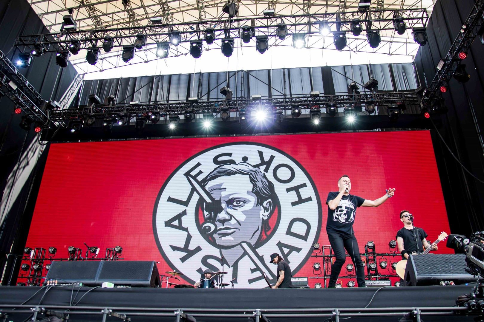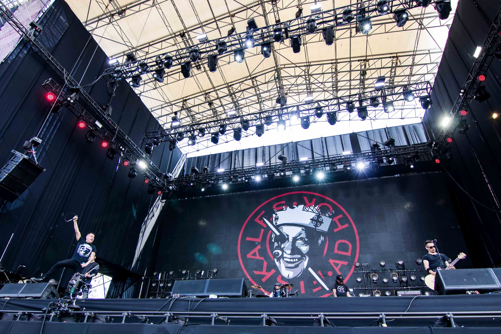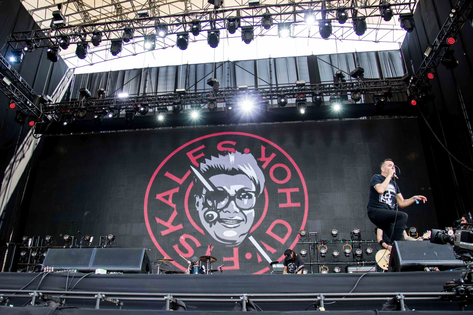 La leyenda del punk chileno abrió el VTR Stage y aprovechó la imponente infraestructura para mostrar imágenes de diversas figuras interviniendo su logo y atravesándolos «por la lanza mapuche», como indicó el propio vocalista, Álvaro España, según Radio Futuro.