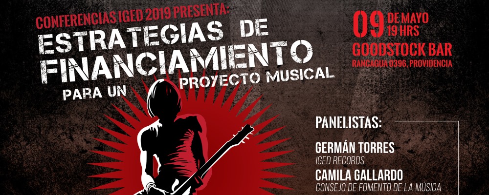 Luego del exitoso primer encuentro de Conferencias IGED realizado en abril, el sello del Rock regresa con un nuevo encuentro denominado Estrategias de Financiamiento para un proyecto musical a realizarse el próximo 9 de mayo a partir de las 19 hrs. en GoodStock Bar, ubicado en Rancagua 0396, Providencia.
