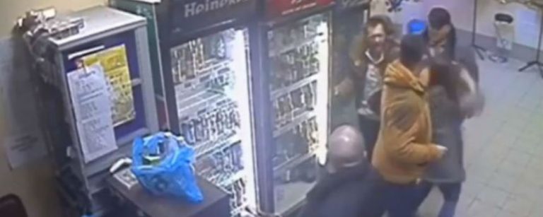 En las imágenes, grabadas por las cámaras de seguridad del establecimiento, se ve cómo el cliente agarra por el abrigo a otro hombre que se encuentra en evidente estado de ebriedad y lo golpea la cabeza contra una de las máquinas.