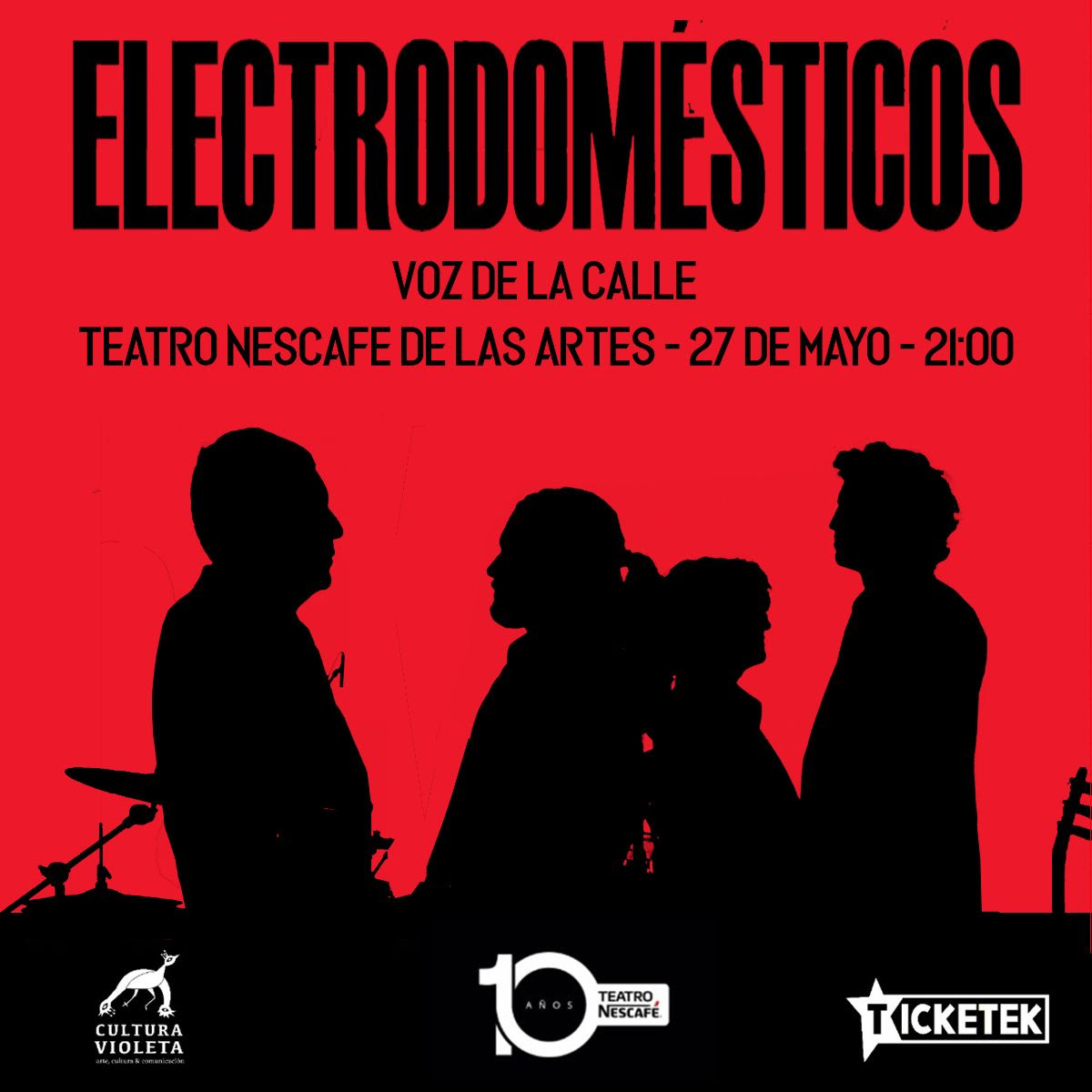 El próximo lunes 27 de Electrodomésticos se presentará en el Teatro Nescafé de las Artes para celebrar la edición deluxe de su más reciente disco Ex La Humanidad. El espectáculo, bautizado «Voz de la calle», ya tiene entradas disponibles a la venta a través de Ticketek.