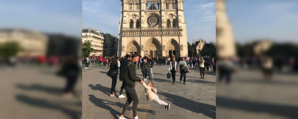 Solo una hora antes de que el fuego consumiera parte del edificio, la turista fotografió el frontis de la catedral y junto con ella, a un hombre y una niña, se presume que padre e hija, sin que ellos lo supieran.
