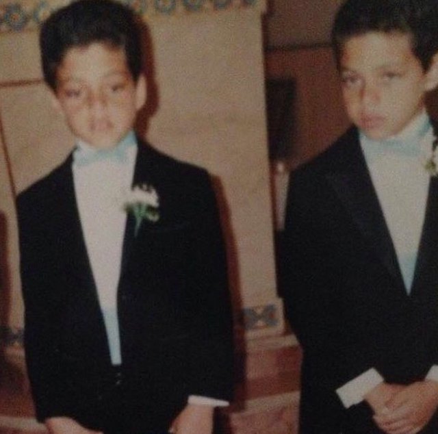 Se trata de una foto de Malek cuando pequeño, en la que aparece justamente al lado de su hermano. Ambos vestidos de traje, como si se tratara de una celebración.