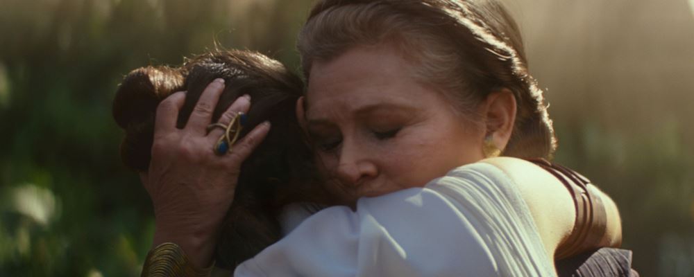 El realizador originalmente trató de dejar a Billie Lourd, hija de Carrie Fisher y parte del elenco de la nueva trilogía, fuera de las escenas que incluían a su madre en caso de que fuera algo demasiado doloroso. Pero Lourd insistió en estar en ellas. Abrams agregó que algunas de esas escenas incluyen a las dos hablando o teniendo contacto: «Hay momentos en esta película en los que Carrie está allí”, dijo Abrams, “y realmente siento que hay un elemento de lo extraño, espiritual, ya sabes, clásico de Carrie, que hubiera sucedido de esta manera, porque de alguna manera funcionó. Y nunca pensé que lo haría».