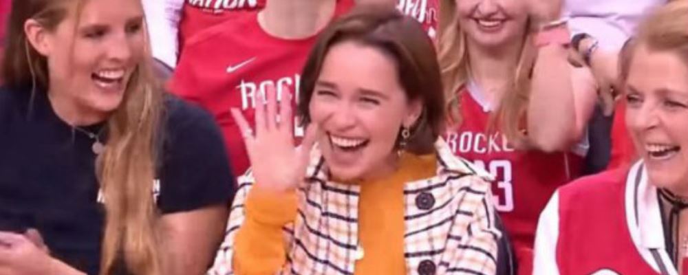 La actriz, encargada de encarnar a Daenerys Targaryen, el viernes acudió a un partido de la NBA, en Houston, en el que se enfrentaban los Rockets y los Warriors, y donde se llevó una sorpresa que la sonrojó.