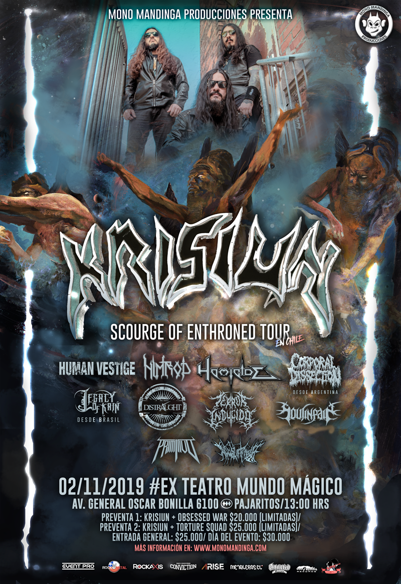 Se confirma un nuevo concierto para nuestro país: los brasileños Krisiun vuelven a Chile para presentar su más reciente disco “Scourge of the enthroned” de 2018 y lo mejor de su carrera como una de las bandas más importantes del metal de Brasil.