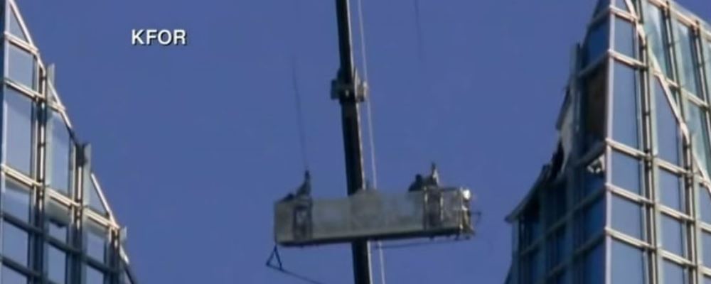 Dos limpiavidrios vivieron minutos de terror en las alturas de la Devon Tower, en la ciudad de Oklahoma, En Estados Unidos, todo por culpa de las fuertes ráfagas de viento en el lugar.