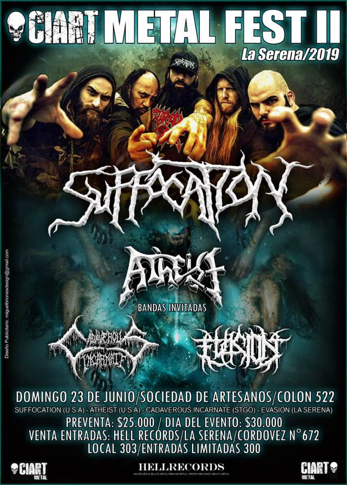 En La Serena estarán el domingo 23 de junio en la Sociedad de Artesanos, en la segunda versión del Ciart Metal Fest, con Cadaverous Incarnate (Santiago) y Evasión (La Serena). Entradas: Hell Records, preventa a $25.000.