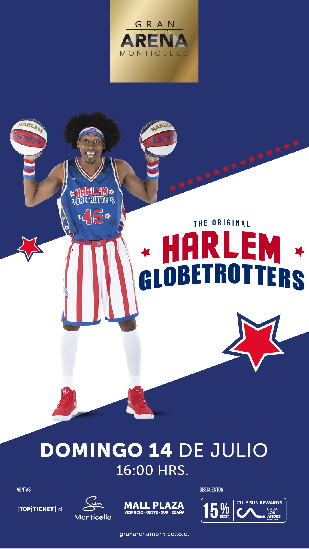 Luego de la exitosa presentación que realizaron en junio de 2017, The Original Harlem Globetrotters regresa a Gran Arena Monticello con el espectáculo deportivo que ha hecho disfrutar a grandes y chicos de todo el mundo. El próximo domingo 14 de julio, las vacaciones de invierno se disfrutarán desde las 16.00 horas.