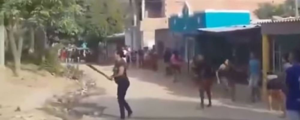 Un video difundido en redes sociales muestra como la vecina agresora sostiene un machete mientras pronuncia amenazas, acompañada de un grupo de mujeres y jóvenes, a la vez que otras personas del vecindario observan el incidente, consigna el sitio Vanguardia.