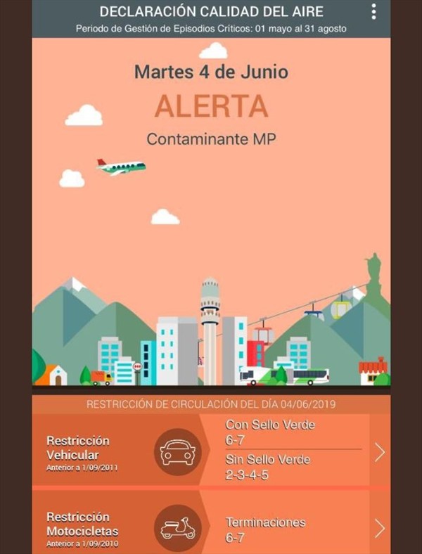 Por su parte, el organismo recordó que la restricción vehicular que rige para este martes, afecta a los autos con sello verde terminados en 6 y 7 (con fecha anterior al 1 de septiembre de 2011).